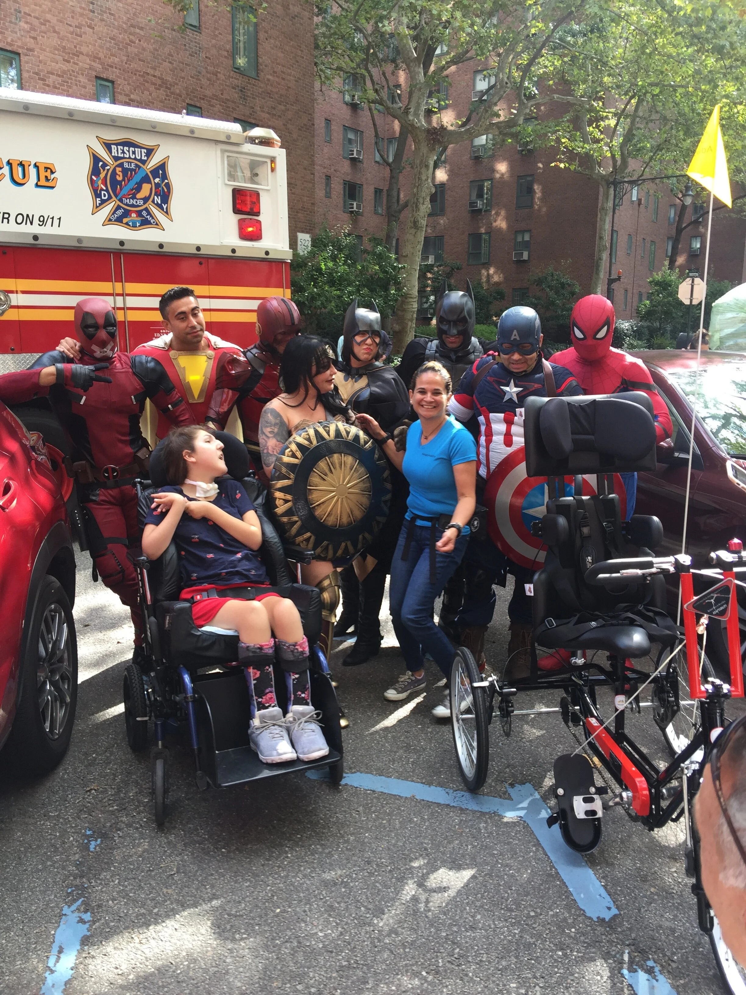 On behalf of Adapt Ability and the Abrams’ Family we want to say Thank You to the FDNY’s Humble Heroes and the FDNY Res5cue Team. Allegra’s favorite super hero Wonder Woman presented her with her custom adaptive bicycle. An impressive presentation at Stuyvesant Town, NY.