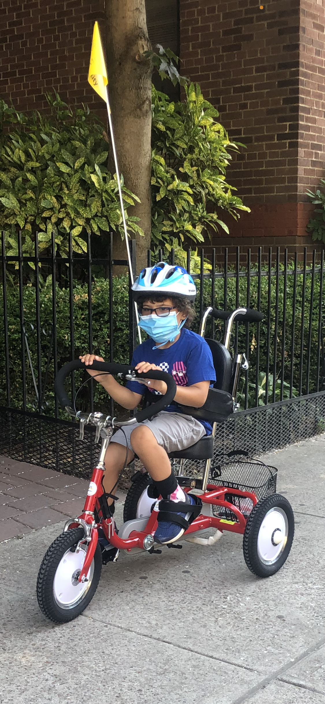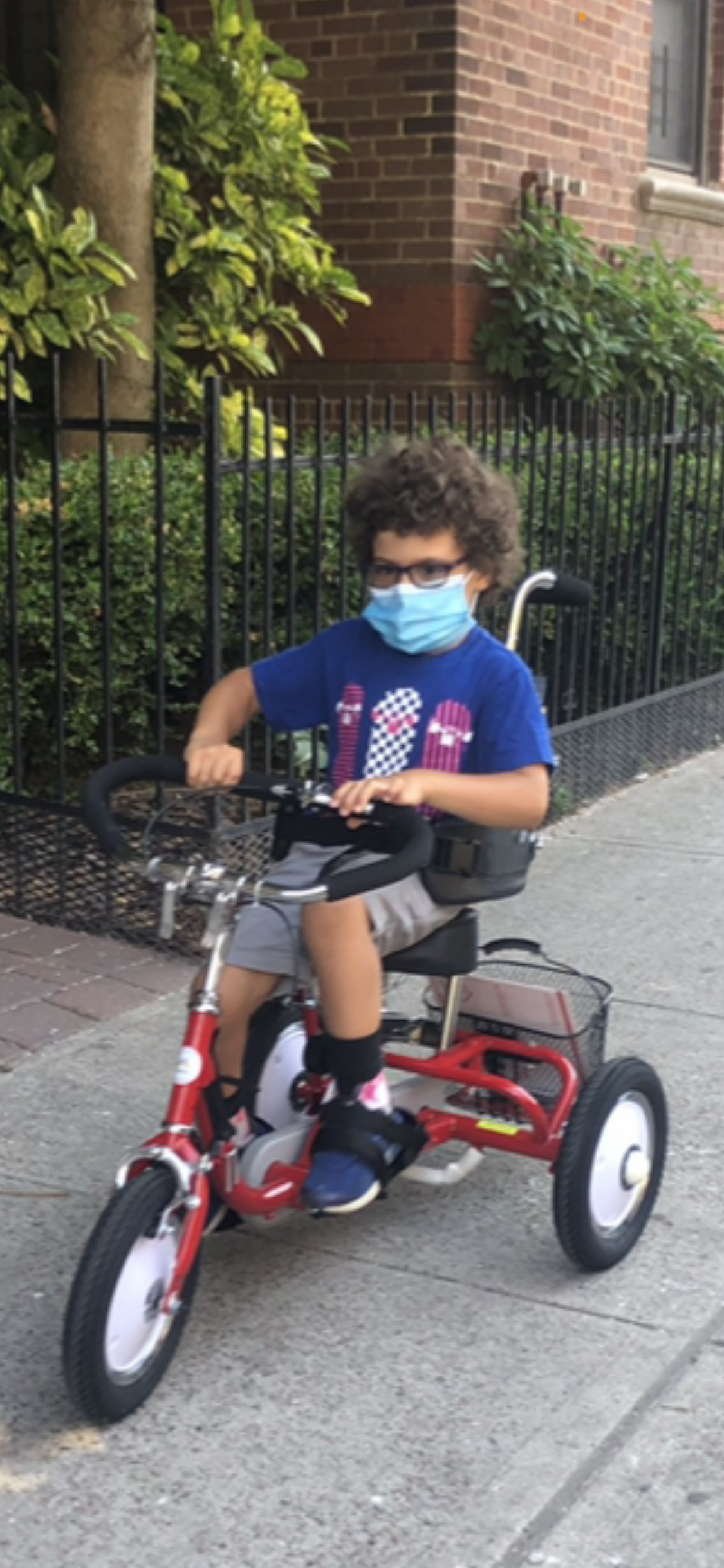 Jayce is always on the move, he is 7 years-old. He had been using a tricycle for about 2 years, going around the park with it. He uses a wheelchair for long distance, but can walk independently for a block and uses a posterior walker in crowds. He hates to sit still and is always finding a reason to walk back and forth, regardless of what’s going on. Having his own bicycle has been a dream of his.