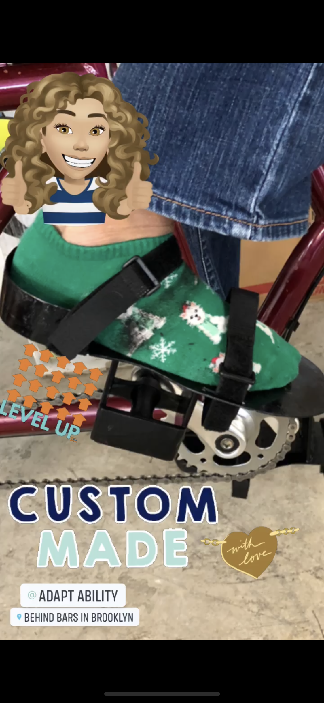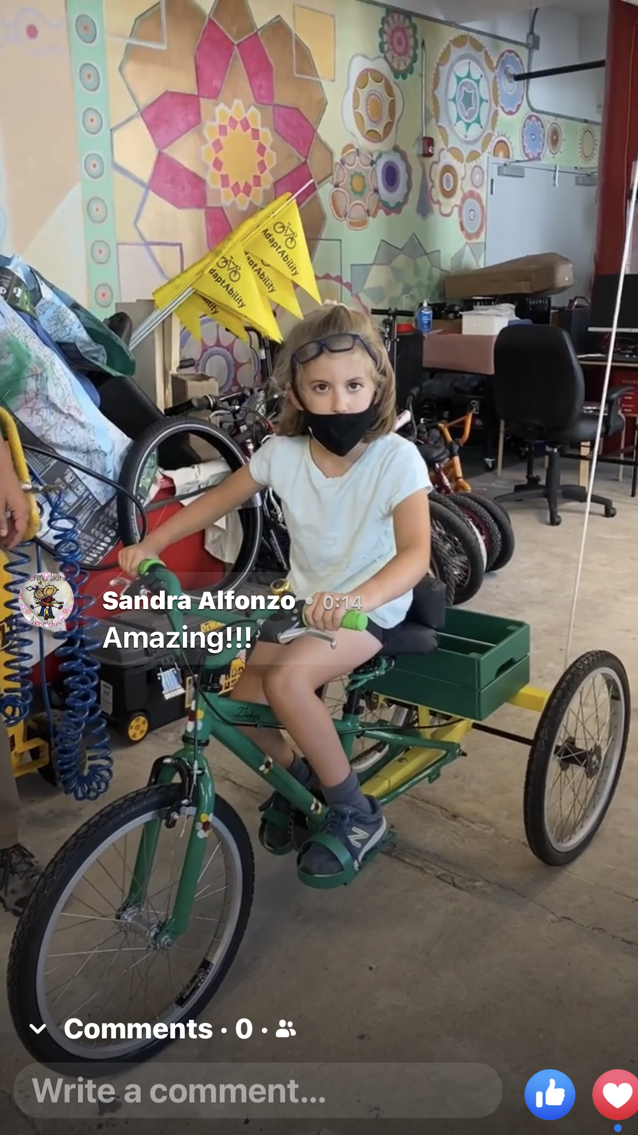 “Get ready for the most joyful 28 seconds. Big thank you @adaptabilitybike for designing the coolest customer bike for my little friend and other like her”. Andrea Ruth
